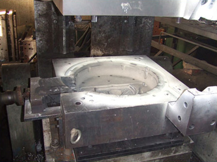 生产中的大柴1108飞轮壳浇铸模